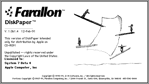 DiskPaper Reader version 1.0b4 shipped on Apple’s first Beta CD of the new operating system in early 1991, and distributed along with that application was a Read Me that gives a sense of the development progress for DiskPaper.